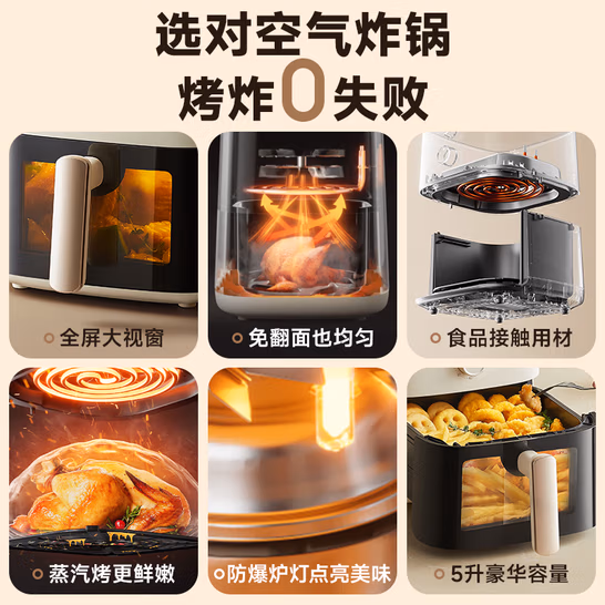 5. 小熊QZG-J15M1空气炸锅大容量5升详细评测:全自动操控,低脂微蒸汽嫩烤一体化